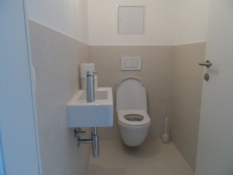 Die Bäder sind mit einer Fußbodenheizung, Badewanne, Waschmaschine und Spiegelschrank ausgestattet. Mittels Raumthermostat können Sie die Heizung optimal steuern. Geheizt wird mittels Fernwärme-Zentralheizung.