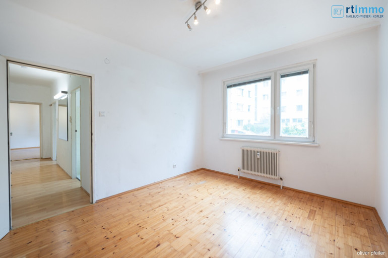 Die Wohnung im 1. Stock empfängt Sie mit einer hellen, freundlichen Atmosphäre. Besonders hervorzuheben ist die gemütliche Loggia – der perfekte Ort für den ersten Kaffee am Morgen oder ein Glas Wein am Abend, während der Blick ins Grüne schweift. Die separate Küche lädt zum gemeinsamen Kochen ein, und das Badezimmer mit eigenem Fenster sorgt für einen frischen Start in den Tag.