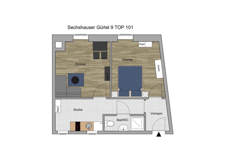 Zimmer mit Parkettboden, Vorzimmer mit Fliesenboden, Gaszentralheizung.