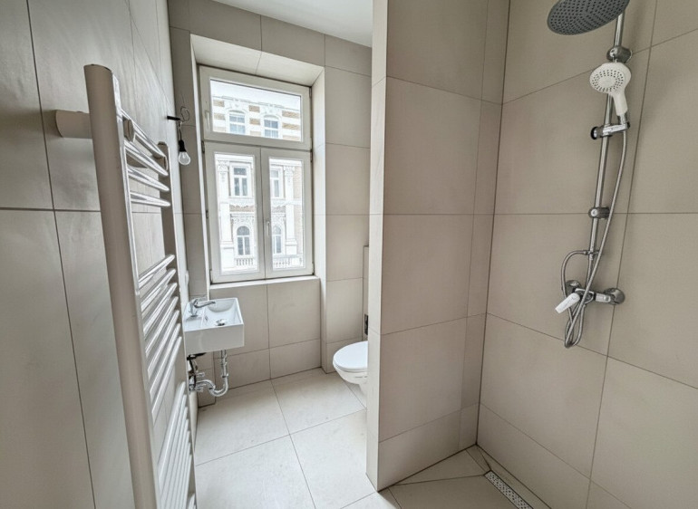 Die Wohnung liegt im 2.Liftstock und verzaubert durch ihre Helligkeit und die hochwertige Ausstattung, bei der man die Liebe für Altbaudetails sofort erkennt. Die Echtholz Eichen-Dielen, die neuen Holz-Türen (Maßgefertigt vom Tischler), sowie die ebenerdige Dusche sind nur ein Auszug der qualitativen Ausstattung.