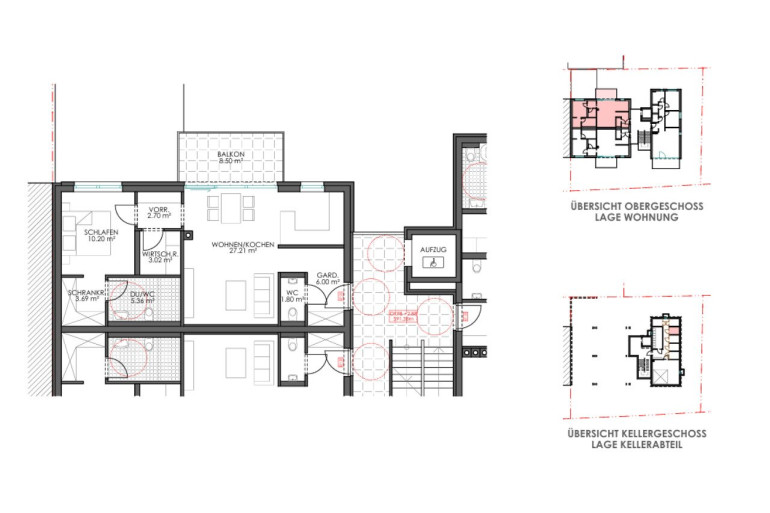 Die Wohnung Top 3 ist im 1. Obergeschoss gelegen. Über eine Diele mit Platz für die Garderobe kommen Sie in die Wohnung. Die Wohnung bietet ein Schlafzimmer mit Ankleide und ein Badezimmer mit Dusche. Das Highlight der Wohnung ist eine offene Wohnküche mit großen Fenster-Elementen und Zugang zum großzügigen Balkon. Komplettiert wird das Angebot mit einem Abstellraum mit Anschlüssen für Waschmaschine und Trockner sowie einem Gäste-WC.