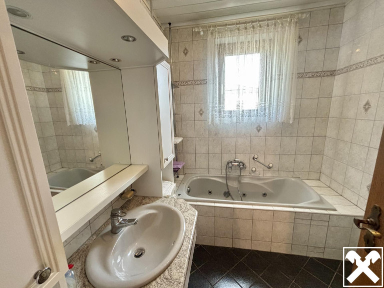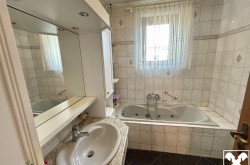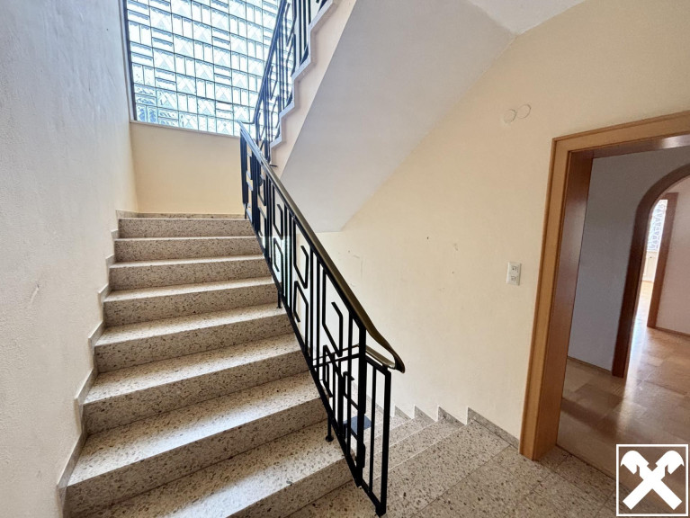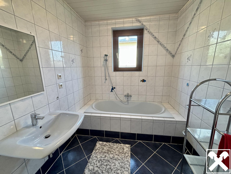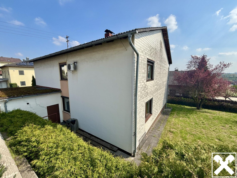 Geboten wird ein zweigeschoßiges Wohnhaus mit zwei Wohneinheiten samt angebauter Einzelgarage in Massivbauweise. Die 1970 errichtete Immobilie ist unterkellert und verfügt über eine Wohnfläche von rund 247 m² sowie einer umfassenden Gartenfläche mit Pool (6 x 4 m). Jede Etage beinhaltet 4 Zimmer zuzüglich Küche, Badezimmer und separatem WC.