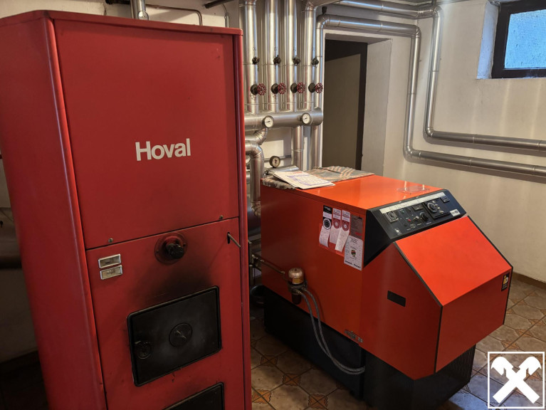 Das Gebäude ist bis auf die Garage voll unterkellert und wird mittels Ölzentralheizung beheizt. nicht barrierefrei