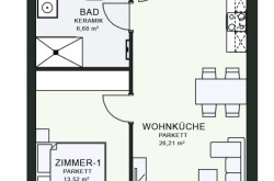Die Wohnungen bieten hochwertige Ausstattungsdetails wie Parkett- oder Keramikböden, maßgefertigte Einbauküchen, Fußbodenheizung über Fernwärme, eigene Kellerabteile sowie private Außenflächen in Form von Balkonen oder Gärten. Sämtliche Einheiten sind barrierefrei über Aufzüge oder überdachte Erschließungswege zugänglich.