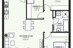 Die Wohnungen bieten hochwertige Ausstattungsdetails wie Parkett- oder Keramikböden, maßgefertigte Einbauküchen, Fußbodenheizung über Fernwärme, eigene Kellerabteile sowie private Außenflächen in Form von Balkonen oder Gärten. Sämtliche Einheiten sind barrierefrei über Aufzüge oder überdachte Erschließungswege zugänglich.