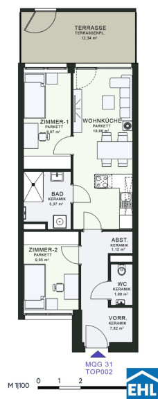 Fliesen, Parkett, Fußbodenheizung, Wohnküche / offene Küche, Personenaufzug, Dusche