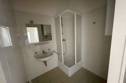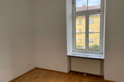 Die Wohnung liegt im ersten Obergeschoß eines Mehrparteienhauses. Sie besteht aus einem Wohnzimmer mit integrierter Küche, 2 Schlafräumen, einem Vorraum, einem Badezimmer (Dusche, Waschmaschinenanschluss) und einem WC.