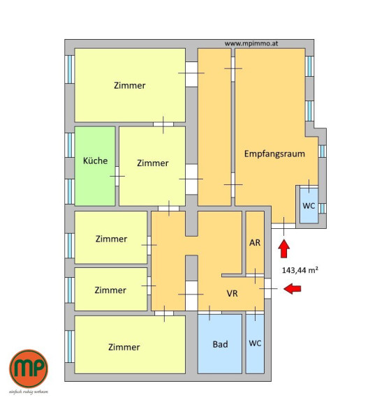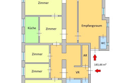- Maximale Flexibilität: Dank zweier getrennter Eingänge ist eine strikte Unterteilung in Praxis- und Privatbereich möglich. Alternativ lässt sich die Fläche vollständig als großflächige Ordination mit weiteren Behandlungszimmern nutzen.