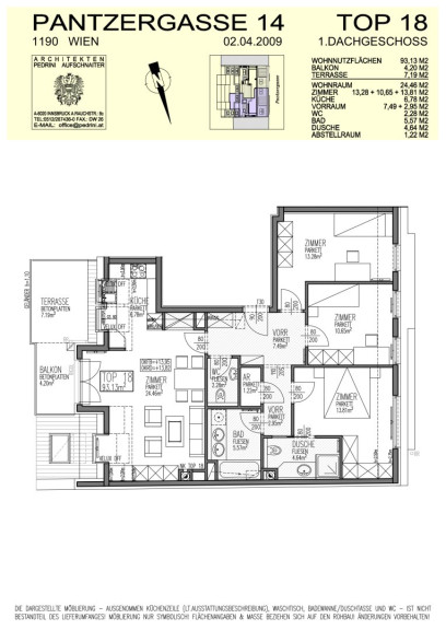 Wohnnutzfläche: A ~ 93,13 m² zzgl. ca. 4,20 m² Balkon und 7,19 m² Terrasse