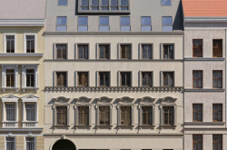 Die stilvolle Bestandsfassade blieb bis zum zweiten Obergeschoß bestehen und bietet im Erdgeschoß und 2. Obergeschoß Wohnsituationen mit Raumhöhen zwischen 3,50 und 4 m!