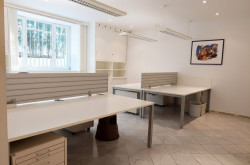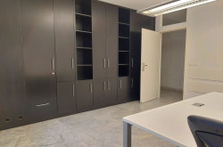 > Komplett ausgestattet mit weißen Schreibtischen samt Rollconttainern (weiß), teilweise Bürostühlen (schwarz), Beleuchtungskörper, komfortablen Einbaukästen bzw. Wandverbauten