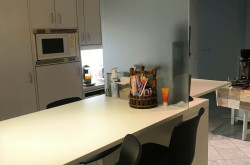 > Teeküche mit Hochtisch und Barhockern, gemeinsam mit dem Hauptmieter zu nutzen