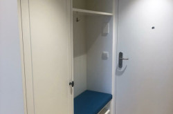- einen Vorraum mit integrierter Garderobe und Kasten