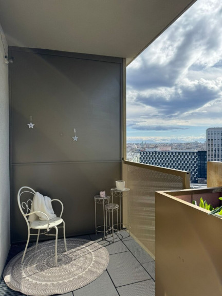 Das modern möblierte 2-Zimmer-Appartment mit großer Loggia liegt in einem der modernen Türme in der Bahnhof City.