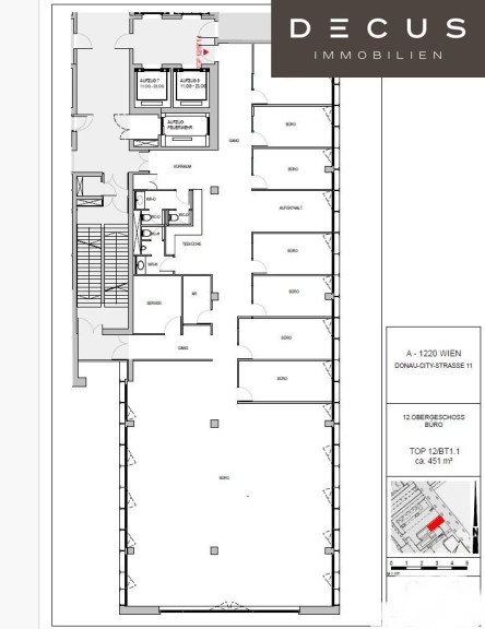 Das Erdgeschoss des Gebäudes bietet ein Restaurant, einen Portierempfang, eine Zutrittskontrolle und eine moderne Lounge. Die Umgebung sorgt für beste Infrastruktur, die den täglichen Bedarf hervorragend abdeckt - Gastronomie, Bäckereien, Bank, Trafik und eine Apotheke runden den Standort ab. Das beliebte Erholungsgebiet, der Donaupark und die gegenüber gelegene Donauinsel finden Sie nur einen Steinwurf entfernt.