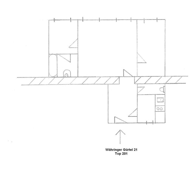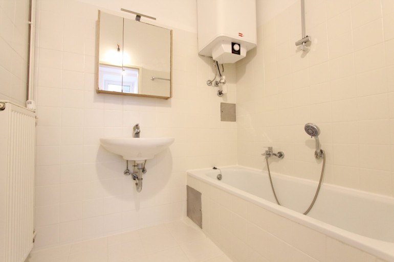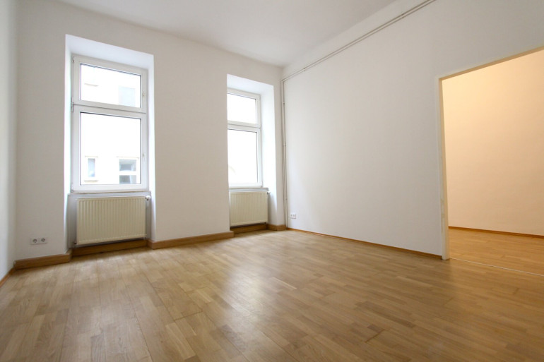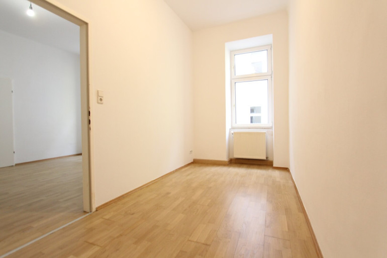 Gemütliche 3-Zimmer-Wohnung mit Parkettboden, 52m², Zimmer hofseitig, Einbauküche mit Kühlschrank, E-Herd und Dunstabzug, Bad mit Wanne, WC, Vorzimmer mit Fliesenoden, Gaszentralheizung, Strom zentral.