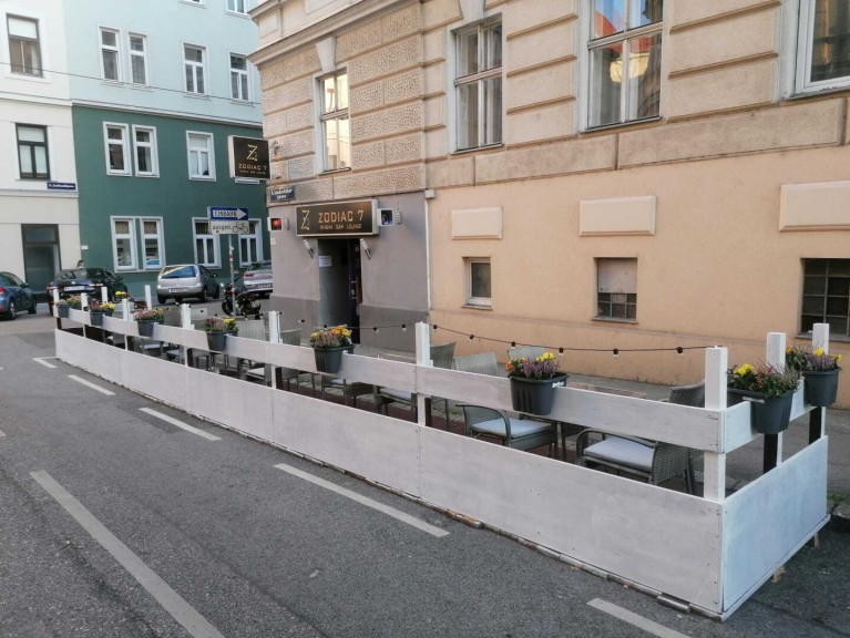 - Auf zwei verschiedenen Straßenseiten sind je ein Schanigarten möglich und schaffen zusammen ca. 40 Sitzplätze im Freien — perfekt für Sommerbetrieb, Shisha-Lounge oder einfach mehr Platz wenn es drinnen voll wird.