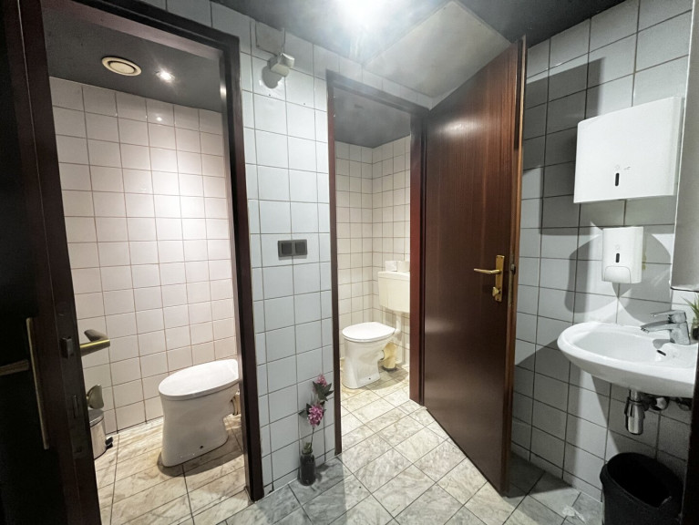 - 4 WC-Anlagen (2 Damen, 1 Herren, 1 Mitarbeiter) + separater Büroraum (4,6 m²)