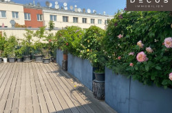 Die zweite Terrasse ist ebenfalls mit Lärchenholz, Bepflanzung, Steckdose und automatischem Bewässerungssystem ausgestattet.