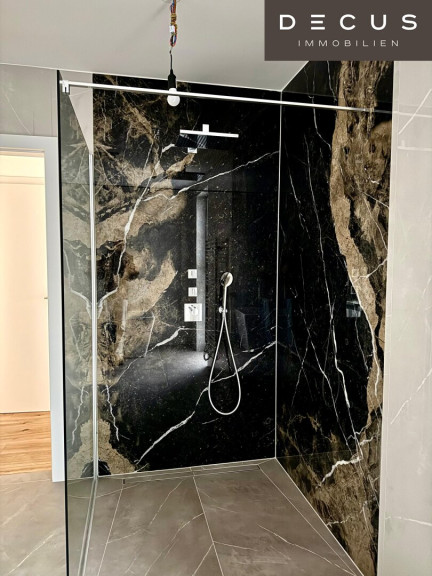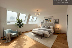 Das Master Bedroom mit en-suite Badezimmer unterstreicht den exklusiven Charakter der Wohnung und bietet einen privaten Rückzugsbereich mit besonderem Komfort. Edler Landhausdielen-Parkett, feinste Feinsteinzeug-Fliesen, großflächige Fensterfronten mit 3-fach-Verglasung, Fußbodenheizung, moderne Wärmetechnik, eine Sicherheitstür sowie ein Lift bis ins Dachgeschoss ergänzen das anspruchsvolle Gesamtkonzept auf elegante Weise.