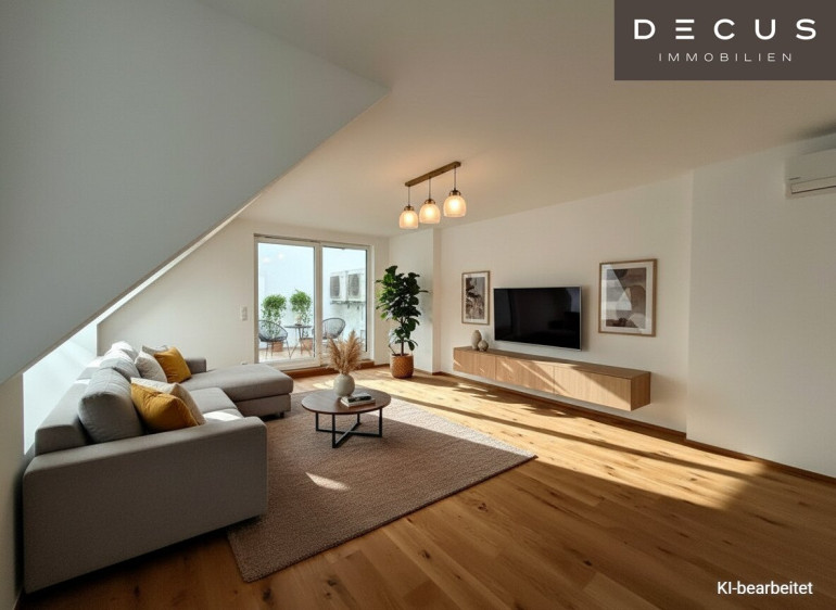 Diese eindrucksvolle Dachgeschosswohnung vereint auf rund 132,40 m² Wohnfläche großzügige Dimensionen, elegante Ausstattung und ein Höchstmaß an Wohnkomfort. In Kombination mit der weitläufigen Terrasse mit ca. 33,05 m² entsteht ein außergewöhnliches Zuhause für Menschen mit Sinn für Ästhetik, Qualität und diskreten Rückzugsraum.