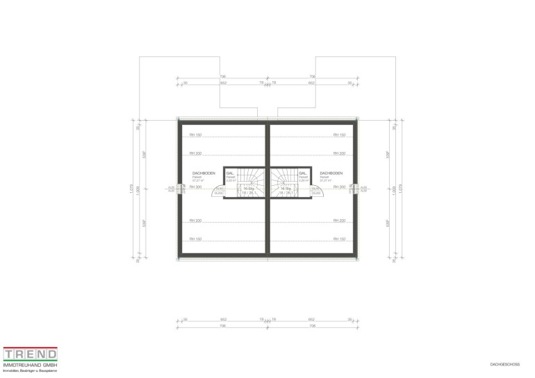 ca. 41 cm. Die Gebäudetrennwände werden ebenfalls in Zimmermeisterqualität gemäß Plan ausgeführt.