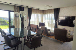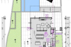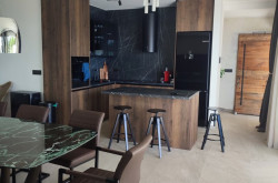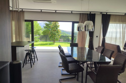 Der Wohn-Essbereich ist fast 60m² groß und mit einem offenen Kamin ausgestattet. Durch die sehr großen Fensterflächen ist dieser Bereich nicht nur sehr hell, sondern es gehen auch Innen- und Außenbereich fließend ineinander über.