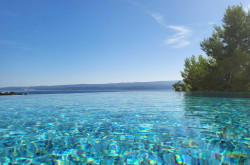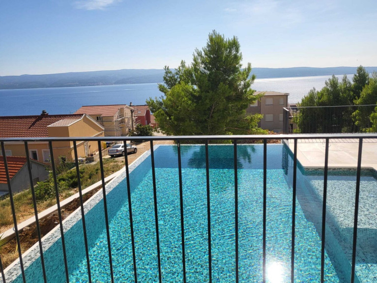 Der Strand von Dugi Rat erstreckt sich an einer flach abfallenden Küste aus Kies-, Feinkies- und Felsabschnitten. Gelegentlich prägen Badestege das Bild, die gerne als Liegefläche über dem türkisfarbenen Meer genutzt werden. Kiefern und Pinien spenden am Strand von Dugi Rat Schatten, wenn die Sonnenschirme der Strandcafés nicht ausreichend Abkühlung verschaffen. Der Strand verfügt über Umkleidekabinen, Duschen, Badeaufsicht, einen abgetrennten Wasserballbereich sowie Parkmöglichkeiten an der oberhalb liegenden Hauptstraße. Hier befinden sich auch verschiedene Geschäfte und Restaurants. Die nahe gelegene Stadt Omiš liegt im Herzen von Dalmatien im Süden Kroatiens an der Mündung der des Flusses Cetina ins adriatische Meer und besitzt eine zauberhafte kleine Altstadt. Die heute hauptsächlich vom Tourismus lebende Stadt hat etwa 15.000 Einwohner. Die nächste größere Stadt ist Split, die etwa 25 Kilometer westlich liegt. Hier finden Sie auch alle kulturellen und kulinarischen Möglichkeiten sowie die Infrastruktur einer Großstadt und einen internationalen Flughafen. Die berühmte Altstadt mit dem antiken Diokletianspalast ist seit 1979 zum UNESCO-Weltkulturerbe und lädt mit seinen zahlreichen Restaurants und Bars an der Flaniermeile Riva zu einem Besuch ein.Beschreibung der Immobilie
