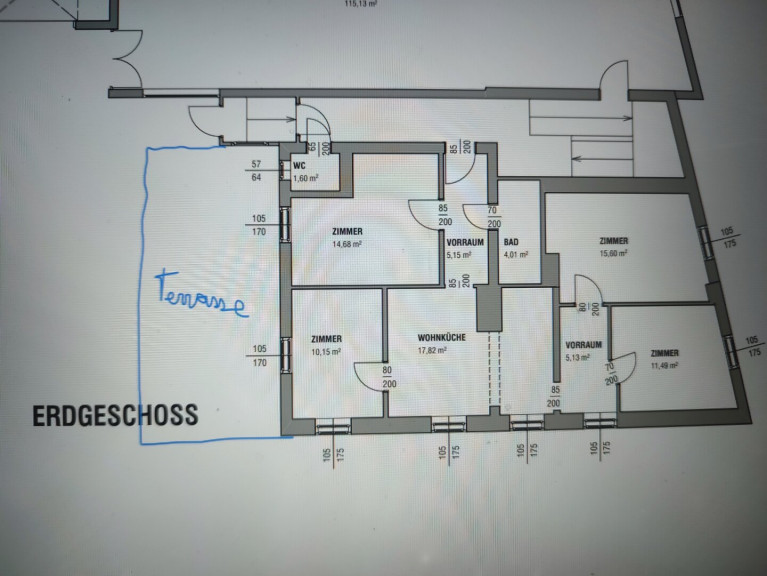Über eine 2 Vorzimmer sind die beiden anderen Zimmer zu erreichen