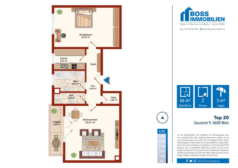 Auf rund 65 m² Wohnfläche plus einer sonnigen Loggia mit 5 m² entfaltet sich ein durchdachtes Zuhause mit zwei Zimmern, das durch seine südliche Ausrichtung besonders hell und freundlich wirkt. Hier zieht das Licht ein – und bleibt.