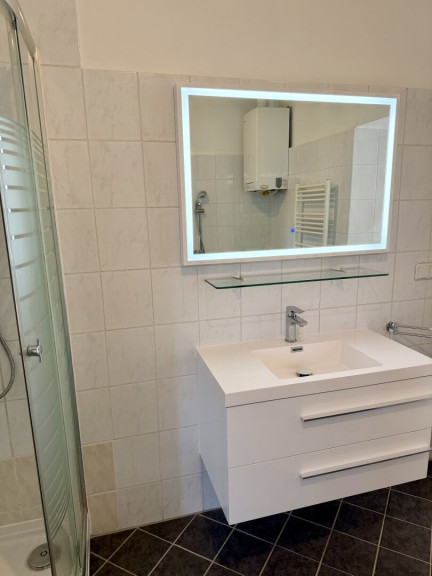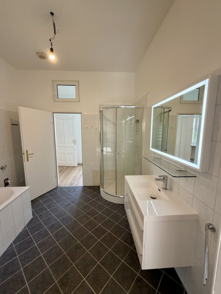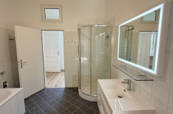 Genießen Sie von hier aus einen beeindruckenden Ausblick auf die Stadt und das umliegende Grün – eine seltene Kombination, die Ihnen Ruhe und Inspiration zugleich schenkt. Das Badezimmer ist mit einer Badewanne und einer separaten Dusche ausgestattet, sodass Komfort und Entspannung garantiert sind.