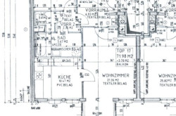 Gasetagenheizung, Einbauküche mit allen Geräten vorhanden; in den Räumen ist aktuell ein grauer Teppich verklebt- dieser kann als Untergrund für die Verlegung eines Parkett- oder Laminatboden genutzt werden, trockenes (uneinsichtiges) Kellerabteil mit eigenem Stromanschluss, Waschküche;
