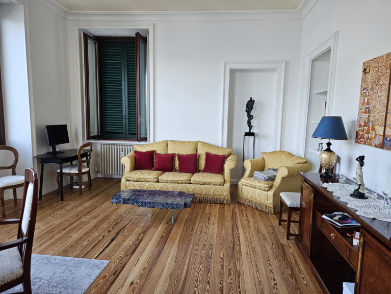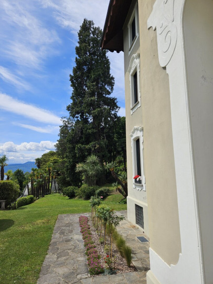 Die ca. 77 m² große Wohnung befindet sich in einer Villa aus dem Jahr 1914, umgeben von einem wunderschönen Park mit einer Vielzahl an Bäumen, Pflanzen und Blumen. Die Wohnung liegt im ersten Stock und bietet einen herrlichen Seeblick sowie absolute Ruhe. Sie besteht aus einem großen Wohnzimmer, einem Schlafzimmer mit Doppelbett, einer Küche und einem Badezimmer. Nur wenige Schritte vom Haus entfernt befinden sich der Strand und ein privater Yachthafen mit der Möglichkeit, einen Liegeplatz zu mieten. Waschküche und Trockenraum stehen den Bewohnern zur Verfügung. Die Villa liegt ca. 1,5 km vom Zentrum von Verbania entfernt. Ein PKW Stellplatz ist Teil des Angebots.