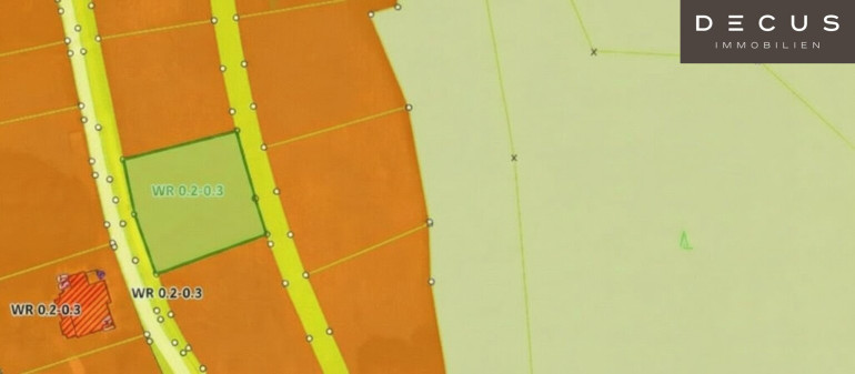 - Widmung: Bauland (Allgemeines Wohnen WR), Baudichte 0,2–0,3