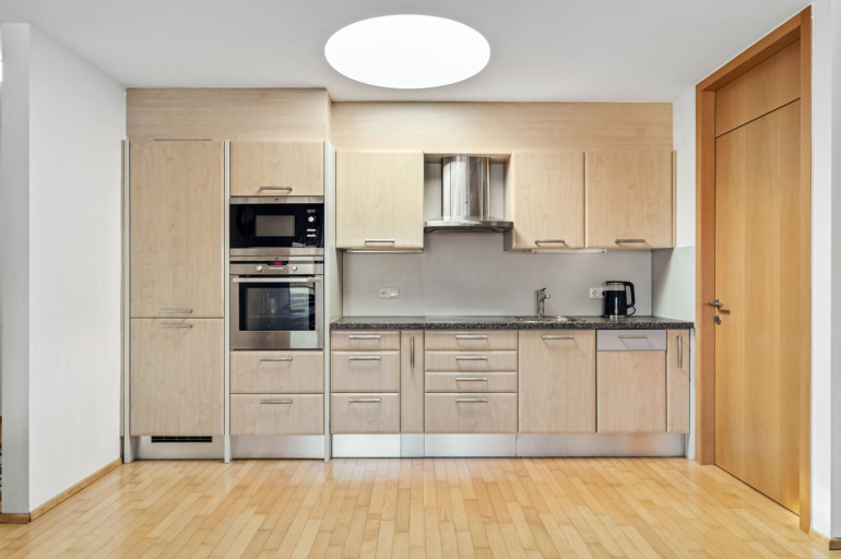 Die Einbauküche ist perfekt ausgestattet und lädt dazu ein, kulinarische Köstlichkeiten zu zaubern. Genießen Sie gesellige Abende mit Freunden oder entspannte Momente in Ihrem eigenen Wohnbereich.