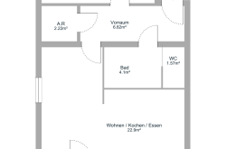- 2 Zimmer (Wohn-/Essbereich + Schlafzimmer)