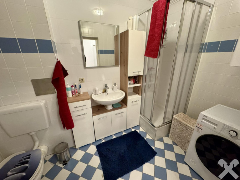 - Badezimmer mit Dusche und Waschmaschinenanschluss