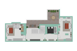 Geradeaus öffnet sich das beeindruckend großzügige Wohnzimmer mit Zugang zur Terrasse. Die voll ausgestattete Küche mit angrenzendem Essbereich wird schnell zum Mittelpunkt. Rechts vom Esszimmer liegt das erste Schlafzimmer mit eigenem, modernen Bad und großem begehbaren Schrankraum - ein luxuriöser Masterbereich auf dieser Ebene.
