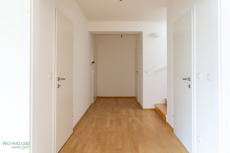 Mit dem Lift gelangen Sie direkt ins Dachgeschoß – auf Wunsch sogar bequem von der Tiefgarage aus. Im Eingangsbereich stehen Ihnen eine separate Toilette, ein Abstellraum sowie ein Wirtschaftsraum zur Verfügung – durchdacht und funktional.