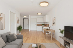 Die Ausstattung vereint Komfort und Stil: Echtholz-Parkettböden, elegante Feinsteinzeugbeläge, eine Komfort-Wohnraumlüftung sowie elektrisch steuerbare Raffstores schaffen ein hochwertiges Wohngefühl. Ergänzt wird das Angebot durch eine hauseigene Tiefgarage mit Vorbereitung für E-Ladestationen und Rampenheizung, sowie eine praktische Home-Delivery-Station im Eingangsbereich.