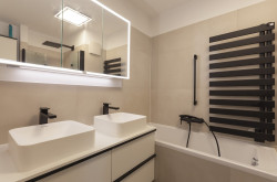 Fliesen, Parkett, Fernwärme, Einbauküche, Badewanne, Dusche