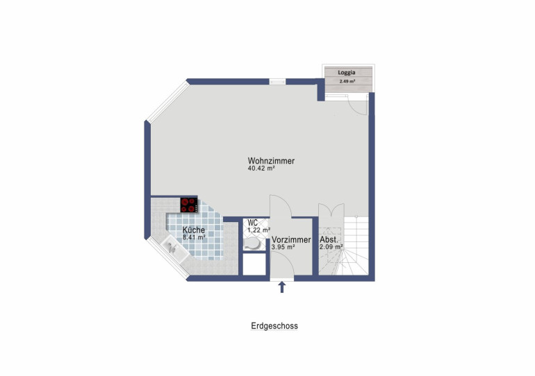 113,89m2 Wohnfläche (inkl. 2 Loggien mit jeweils 2,49m2 Nutzfläche) zzgl. 1 Balkon (4,53m2) und zzgl. 54,74m2 Garten,