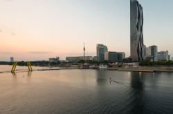 Der von Dominique Perrault entworfene DC TOWER prägt die Wiener Skyline entscheidend.
