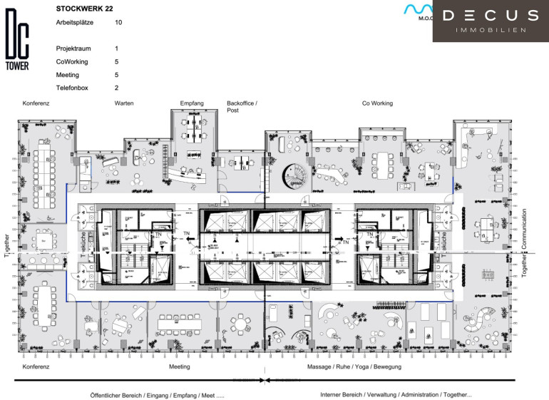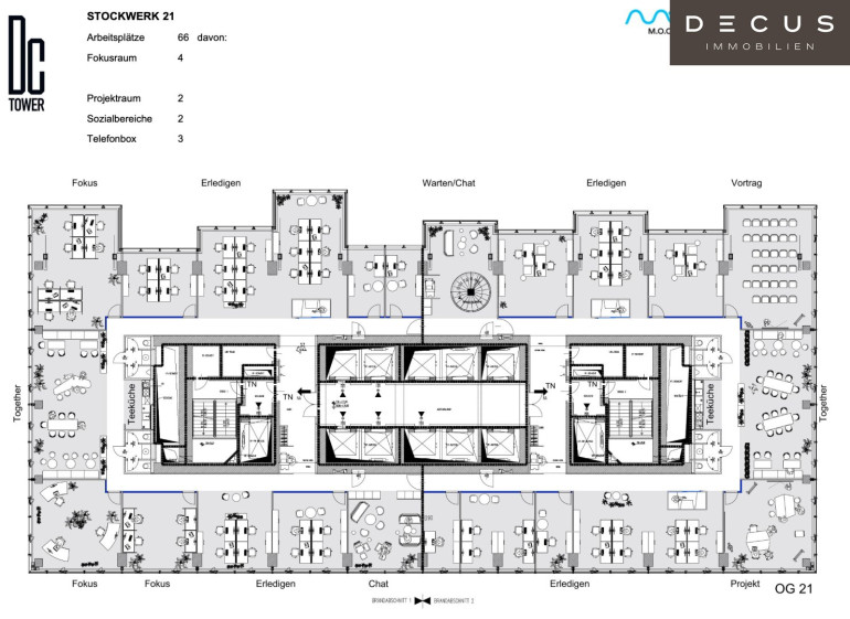 Die Flächenaufstellung beinhaltet die reine Bürofläche exkl. anteiliger Allgemeinfläche.