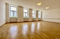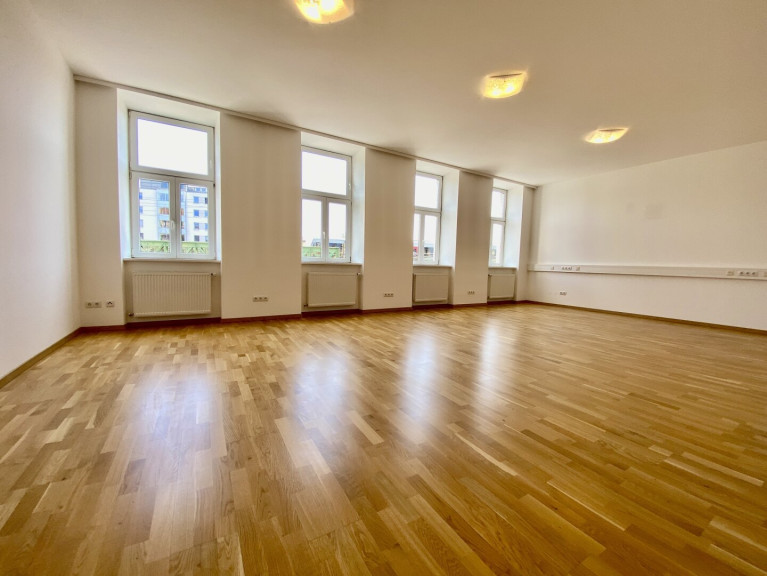 Großräumiges 2-Zimmer-Büro mit Parkettboden, 86m², 1 Zimmer straßenseitig und 1 Zimmer hofseitig, Räume getrennt begehbar, Einbauküche mit Kühlschrank, Mikrowelle, E-Herd und Dunstabzug, Bad mit Dusche, WC separat, Vorzimmer und Küche mit Fliesenboden, Gasetagenheizung.