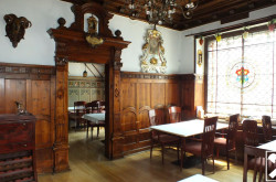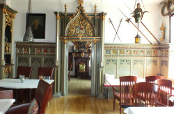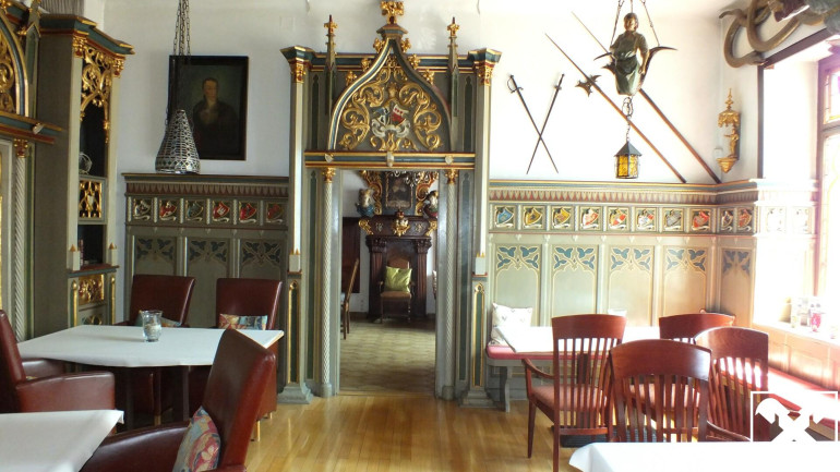 derzeitige Gasträume mit teils historisch wertvoller, extravaganter Innenausstattung: ca. 139 m²