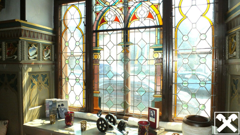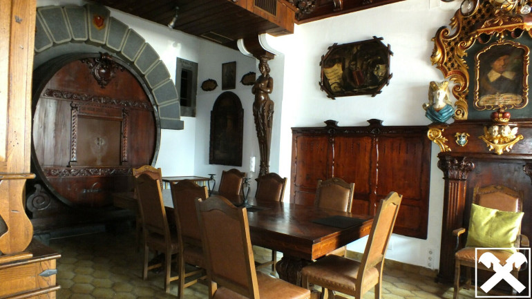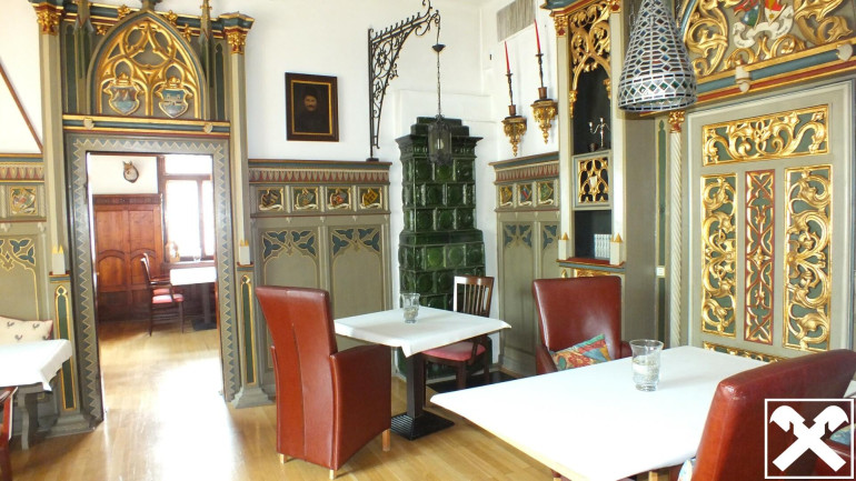 Für viele ist die "Altdeutsche-Weinstube" ein Begriff und untrennbar mit dem Erscheinungsbild der Bezirksstadt verbunden. Das prägnante Haus zum Neuen Platz hin gewandt, die einzigartige Fassade mit der unverwechselbaren Farbe und der kunstvollen Gestaltung, sowie den großen Butzenfenstern im Erdgeschoß. Das Gebäude mit dem Türmchen und hübschen Gaupen im Dachgeschoß beherbergt schon seit Jahrzehnten das jeweils gut geführte Restaurant "Altdeutsche Weinstube".