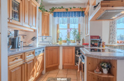 Fliesen, Parkettboden, Öl, Fußbodenheizung, Kamin, Zentralheizung, Einbauküche, Wohnküche / offene Küche, Ostbalkon, Südbalkon, Bad mit Fenster, Badewanne, Dusche, Kabel/Satelliten-TV, Garage, Parkplatz