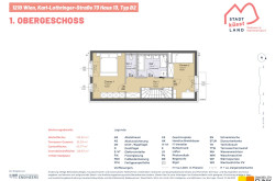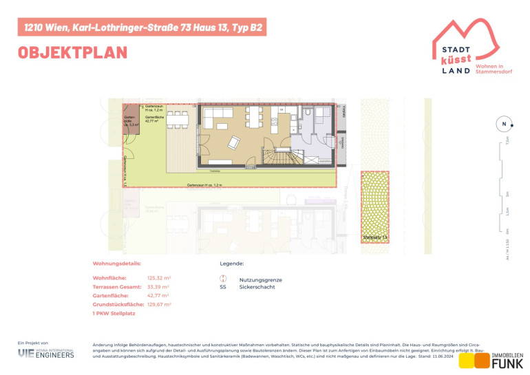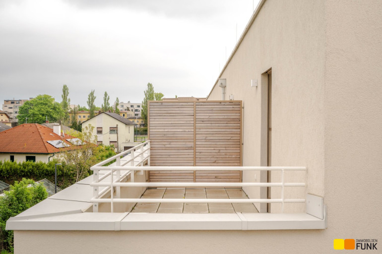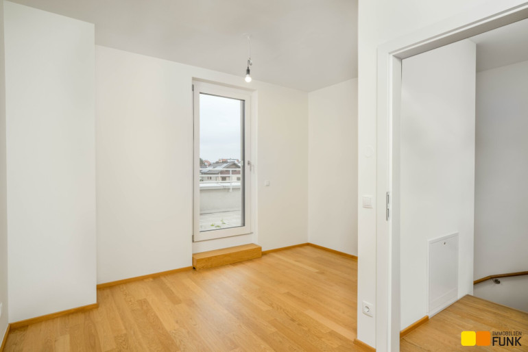 Wohnfläche insgesamt ca. 125 m², angeordnet auf drei Geschoßen mit 5 Zimmern, 2 Toiletten, einem großen Badezimmer, dem Technikraum und einem Abstellraum, sowie einer südseitig ausgerichteten Terrasse mit ca. 14 m², die sich zu einem gemütlichen Gartenbereich mit ca. 42 m² öffnet. Im Dachgeschoß befinden sich zudem zwei Dachterrassen mit ca. 10 m² und 8 m². Die monatliche Miete für den KFZ-Stellplatz direkt vor der Haustür beträgt € 109 inkl. Betriebskosten und USt.