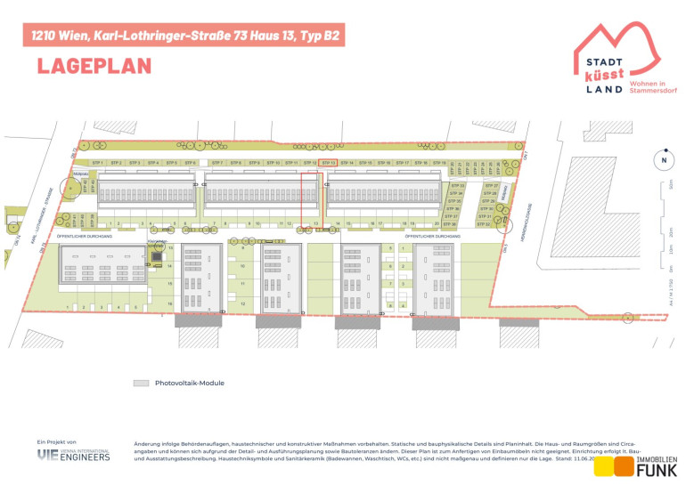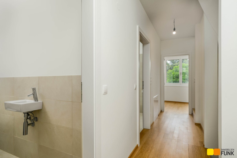 BILLA PLUS, BILLA, Apotheke und das Einkaufszentrum EKAZENT B7 Stammersdorf sind nur einen Spaziergang entfernt. Nach kurzer Autofahrt (ca. 12 Minuten) kommen Sie zum G3 Shopping Resort Gerasdorf. Öffentliche und private Kinderbetreuungseinrichtungen und Schulen befinden sich im Umfeld. Etwa 1,5 km entfernt liegt der Marchfeldkanal und 1 km beträgt die Entfernung vom ländlich gebliebenen, inoffiziellen Hauptplatz von Stammersdorf mit seinen urtümlichen Heurigenlokalen. Etwas weiter, aber in gemütlicher Fußdistanz, befinden sich die Stammersdorfer Kellergassen. In ca. 5 Gehminuten spazieren Sie zur Straßenbahnstation Stammersdorf der Linien 31 und 30. So gelangen Sie in das Stadtzentrum Wiens (Stephansplatz) in ca. 40 Minuten.